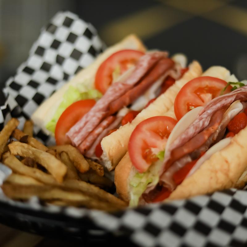 Black forest ham, genoa salami, spicy capicola, pepperoni, provolone cheese, shredded lettuce, tomatoes, oregano, mayonnaise, oil & vinegar.